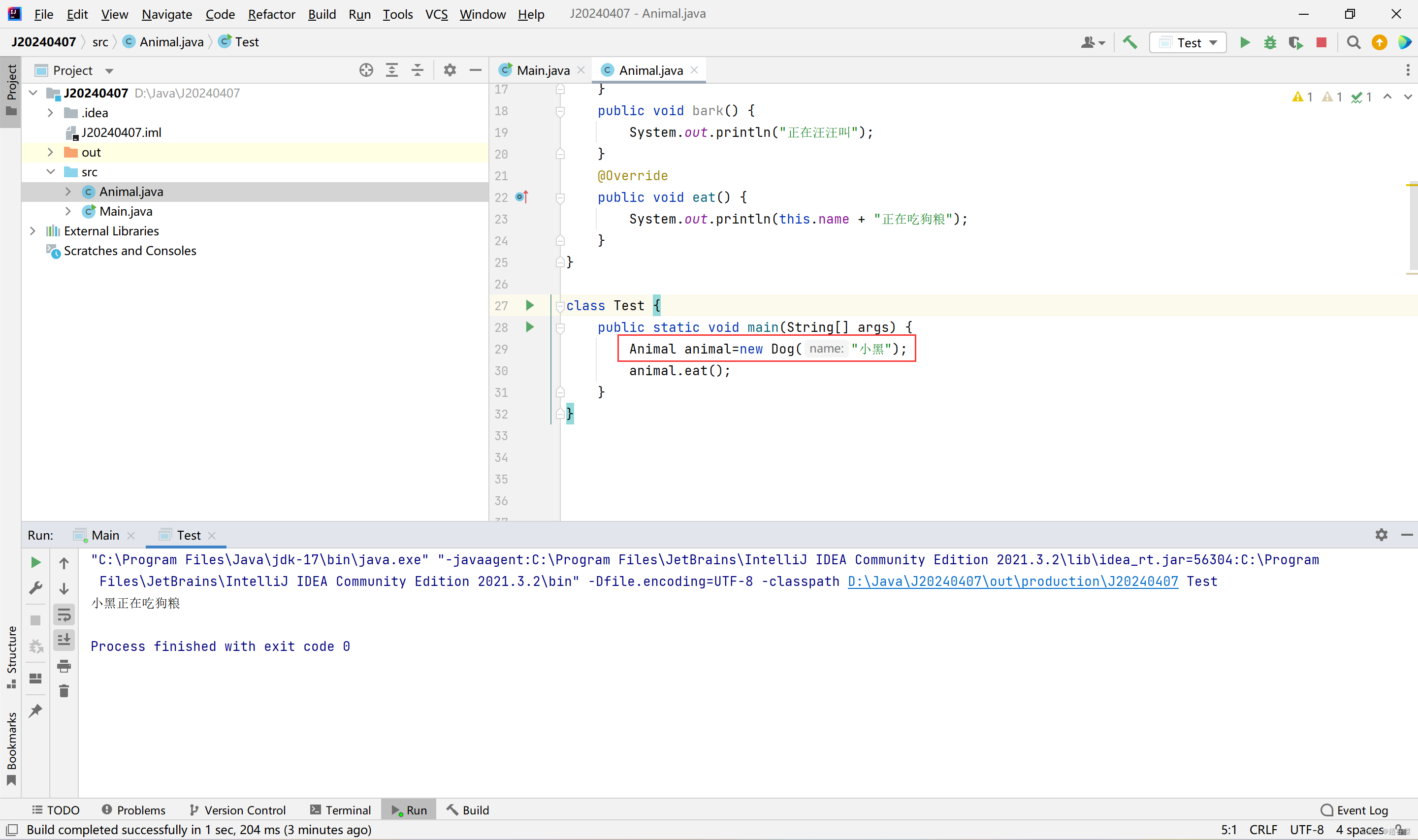 Animal animal=new Dog("小黑");
