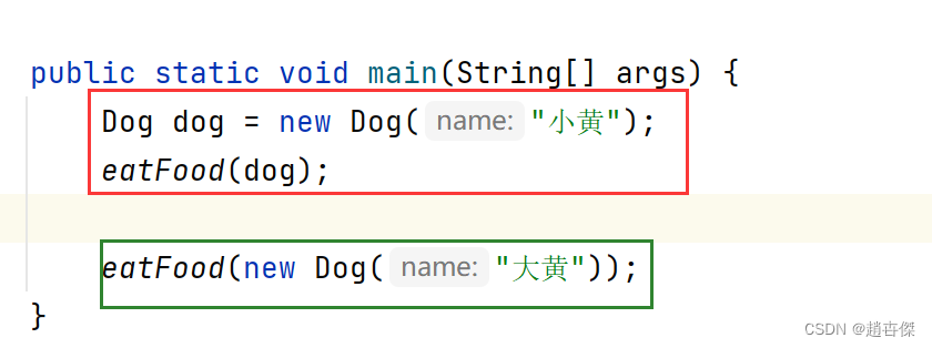 eatFood(new Dog("大黄"));