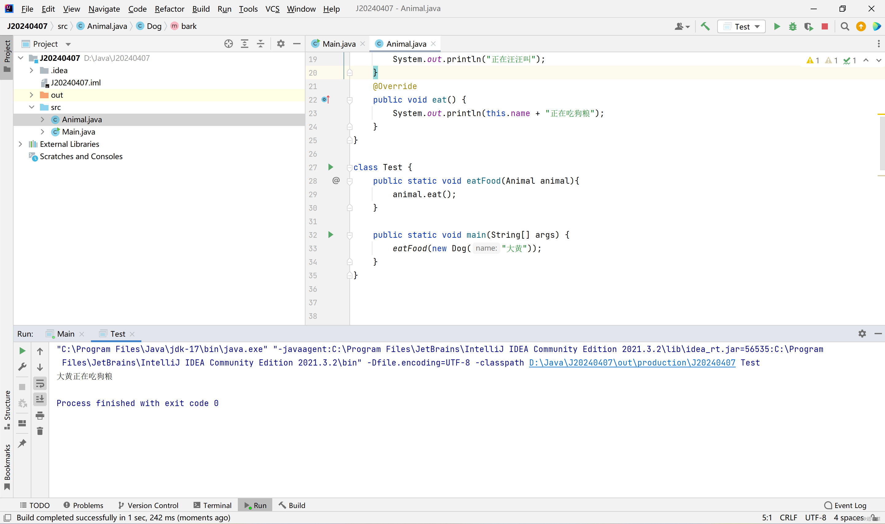 Dog dog = new Dog("狗", 1);