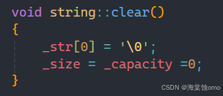 直接将数组第一个位置赋值为'\0',再将_size和_capacity置为0即可。