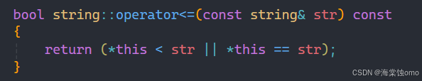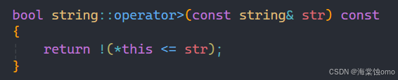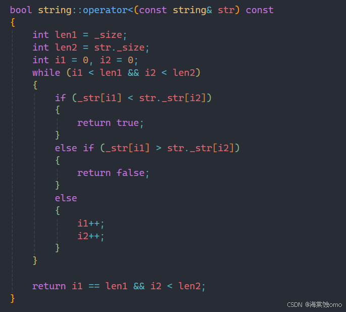 前面和<符号实现基本相同,在循环中判断条件作出修改,如果相应位置字符不相等直接返回false。