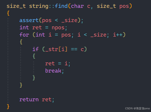 注意:在参数中有个pos,这个参数给个缺省值0,代表如果不传参数,就默认从下标为0的位置开始查找。