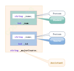 以第二幅图为例,如果Person中有一个_name的成员变量,那么student中会有一份name,teacher中也会有一份,这就导致Assistant在同时继承student和teacher时,就会有两份name,这就是数据冗余,其实也就是造成空间的浪费。