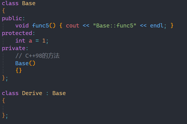 c++98的方法就是将父类的构造函数放在private下,这种方式为什么可以呢?