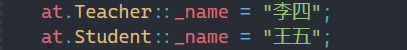 我们通过调试也可以发现,当修改了name之后,所有的name都会发生改变,也说明了name只有一份,看似student和teacher中有name,其实根本就没有把name放入进去。