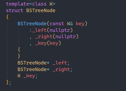 相信看到这个初始化的基本模型,大家就能猜到我要用链表来实现二叉搜索树,这个模型和之前我们实现的list很相似,不过要比list简单许多。并且二叉树的结构在二叉树的章节已经讲过,所以这里就不过多赘述了。
