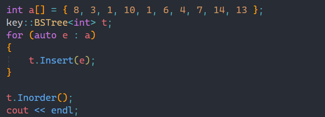 这里通过中序遍历可以看到我们的数据都插入成功,并且也满足没有重复值的条件。