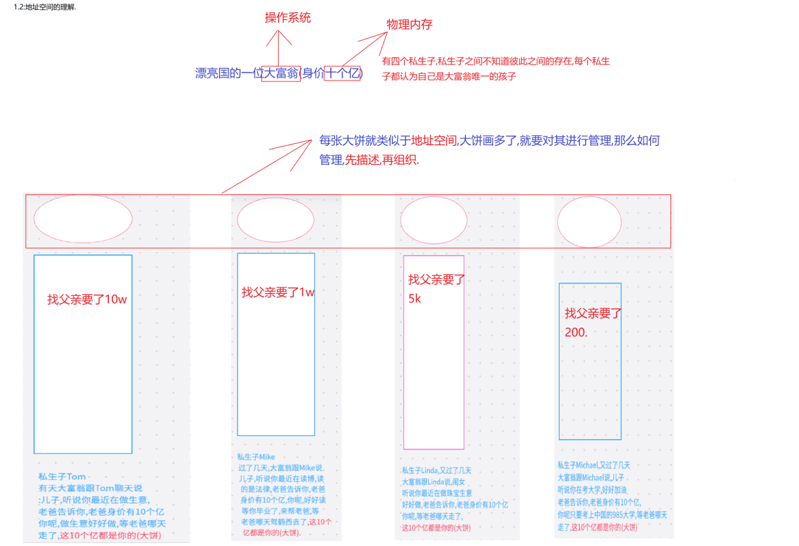 这里首先就要讲解划分区域,我们通过一个小故事来理解划分区域,相信uu们在念书的时候,总会遇到一些比较离谱的同桌,那么这时候呢,就会和同桌划分区域,一开始呢,两人商量好了,假设桌子是100cm长,两人是一人一半,然后呢你那同桌觉得这面积有些窄,想占你便宜,说自个儿要占70cm,然后呢你气不过,觉得对方得寸进尺,这时候也不跟对方客气了,直接就是自己占70cm 那么用计算机语言来描述就是.
