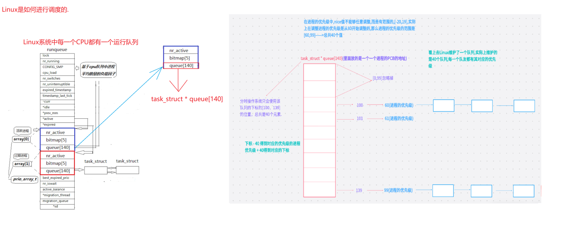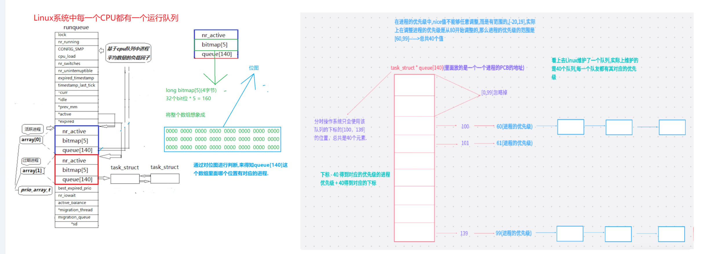 上图是Linux2.6内核中进程队列的数据结构