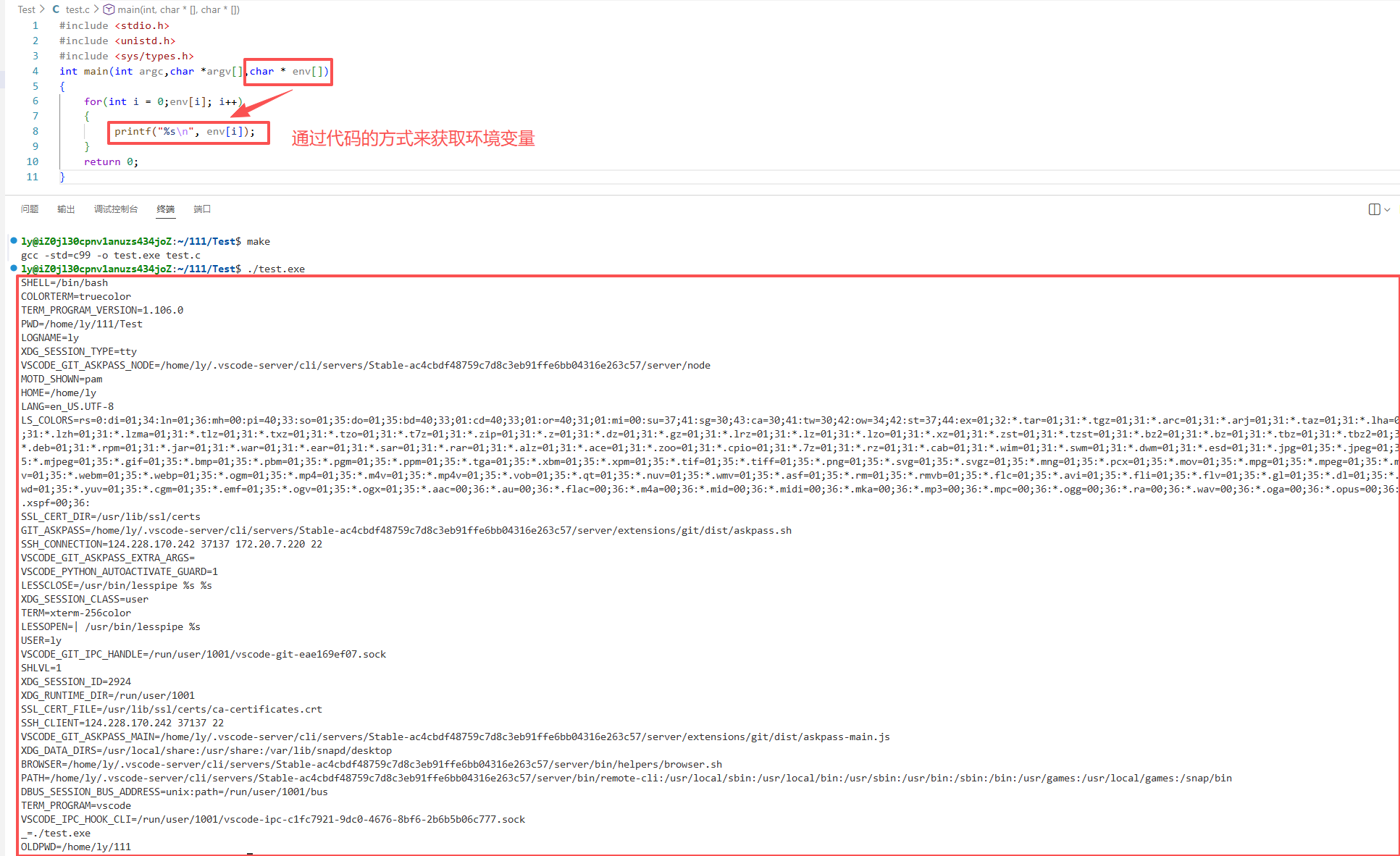 我们可以看到,这些环境变量,就是刚刚Shell内部的环境变量,而我们通过代码的方式获取到了,说明环境变量是默认可以被子进程拿到的(在命令行执行的可执行程序都是bash的子进程).