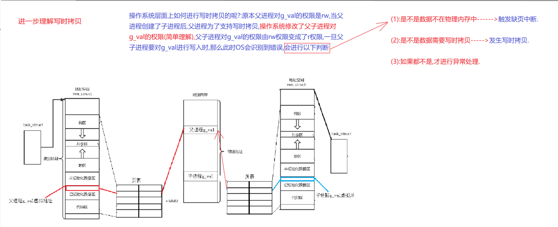 在之前博主有讲到系统的fork函数,他能够帮助我们创建子进程,而且返回值是两个不同的id,但是那时候博主并没有讲原因,这里其实是因为发生了写时拷贝.