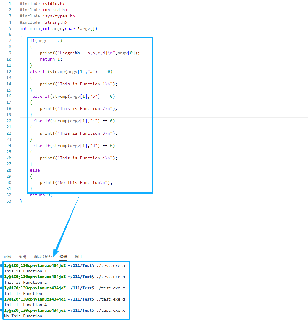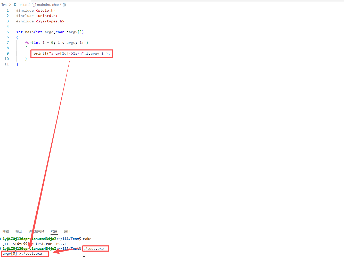 int main(int argc,char * argv[]);那么有的uu会好奇,这个指针数组是用来干啥的,我们来看下面这段代码