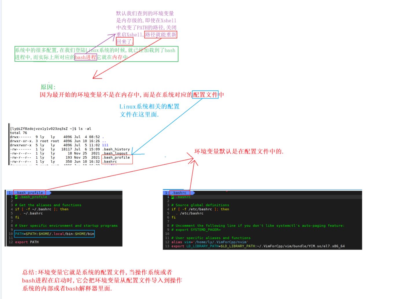 有的uu就会好奇,export也是条命令,那么在使用的时候为什么不会创建子进程呢?因为如果创建的了子进程,那么导入的环境变量就不应该被bash看到,像echo export等等都是内建命令,这是由bash亲自来执行的,而百分之80的命令都是由bash创建子进程来执行的,像ps这些.
