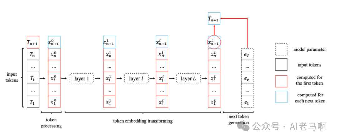 假设当前输入序列中已经存在n个token,将要预测第n+1个token,参考[2] 计算流程如下: