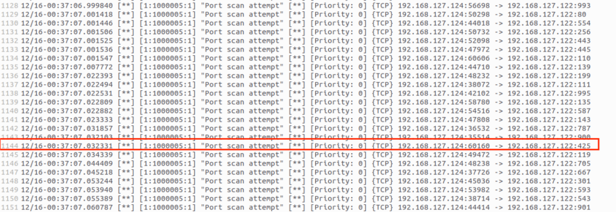 - 优先级: [Priority: 0]:这里的0表示事件的优先级。0通常表示最低优先级或正常级别。这意味着这个端口扫描尝试可能被系统视为一个常规事件,而不是紧急或严重的事件。