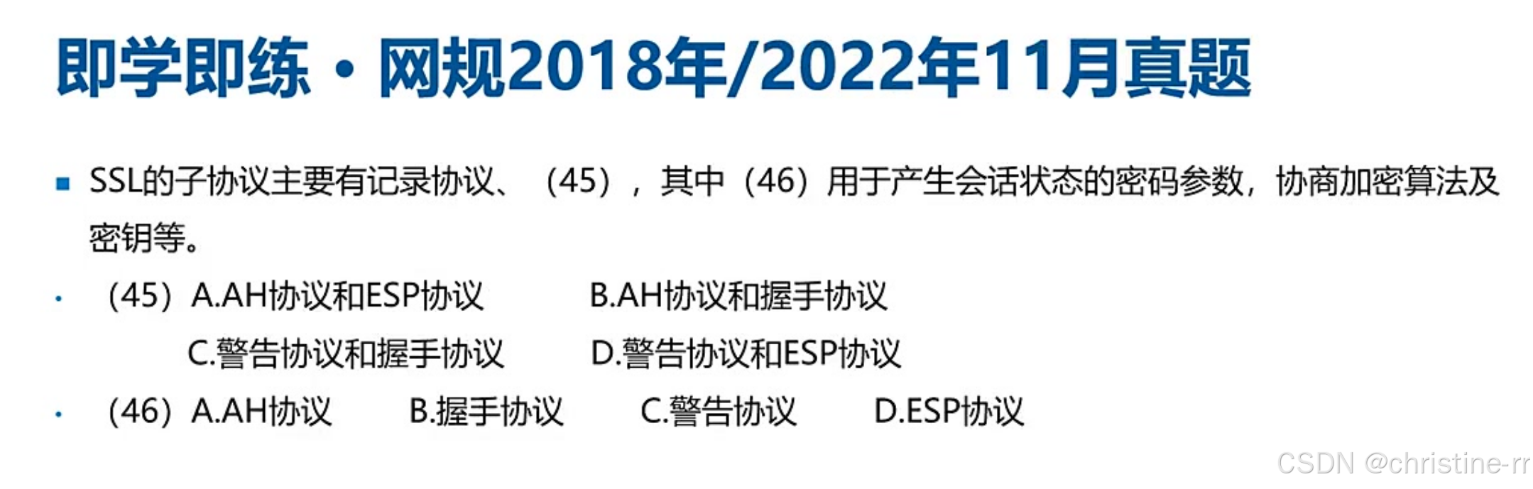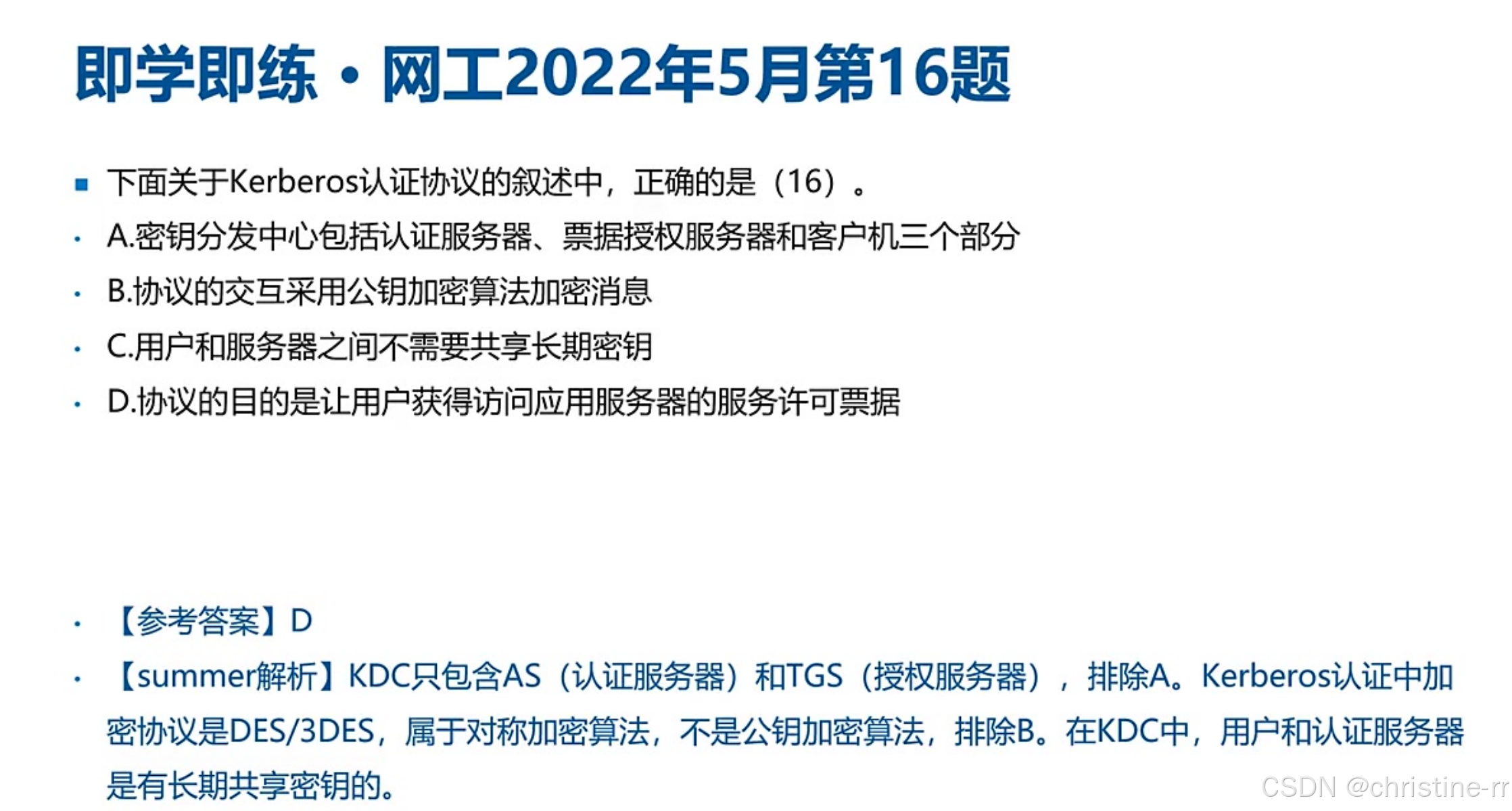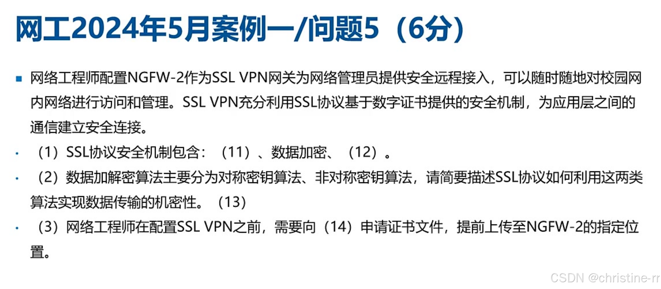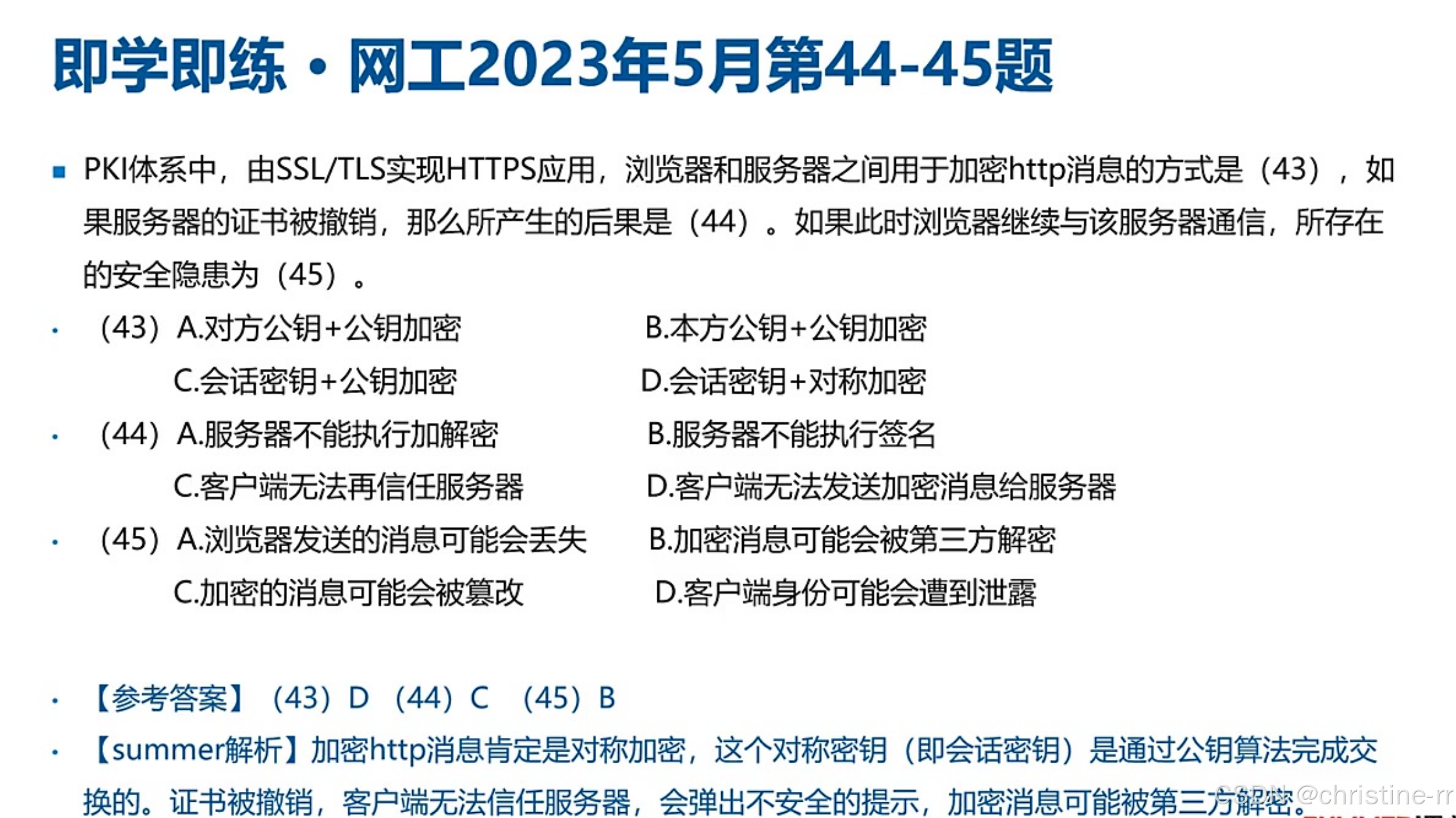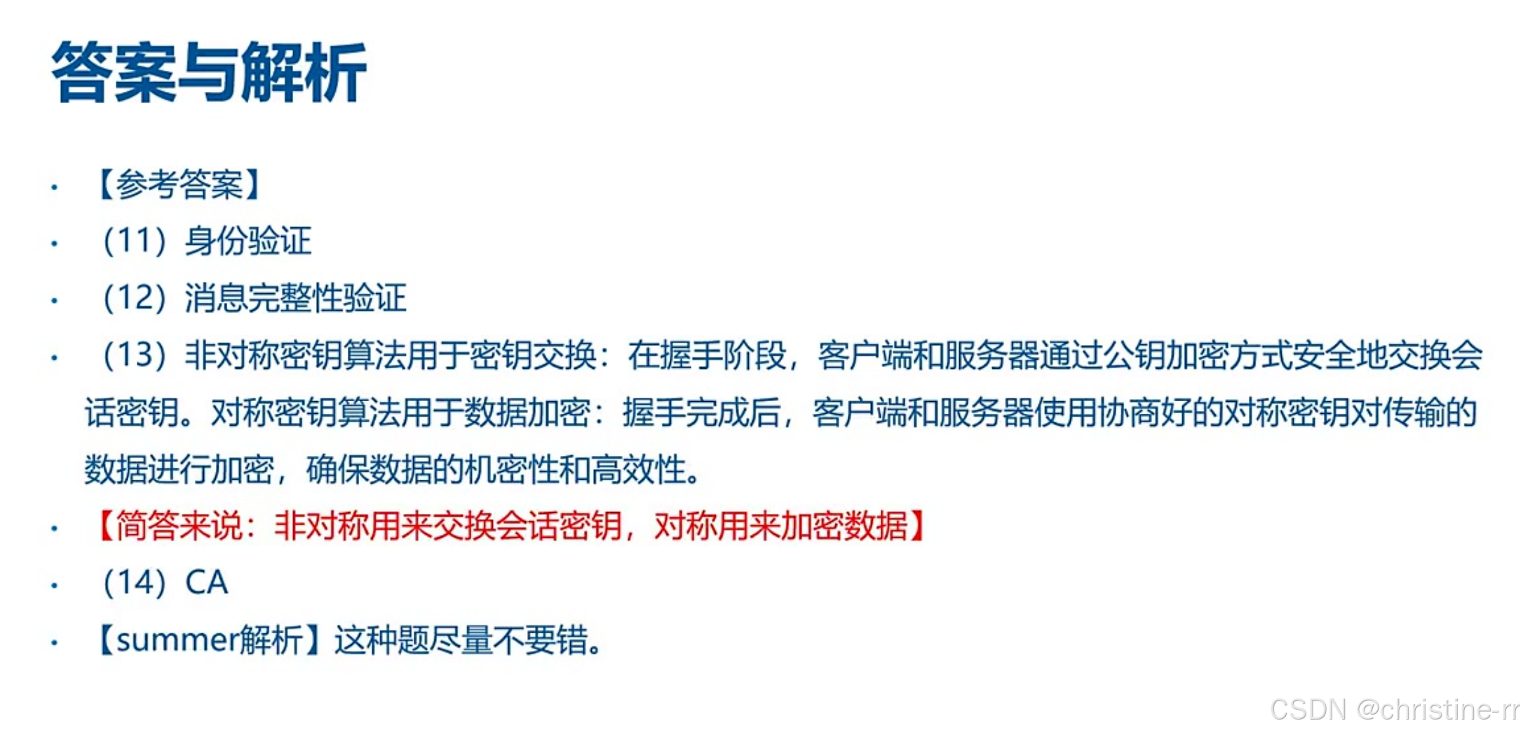 考试技巧:该题型常考核心是区分对称/非对称加密的应用场景,证书信任机制是关键考点