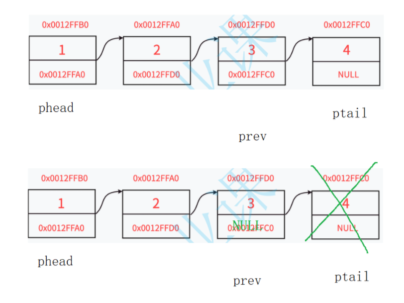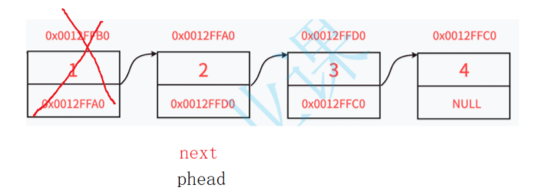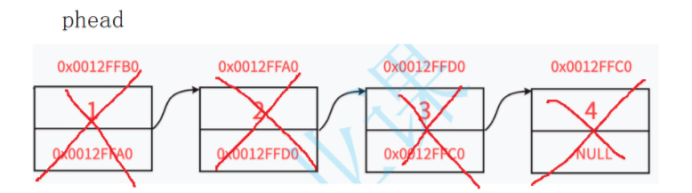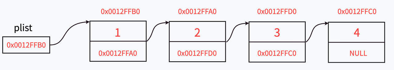 图中的plist指针变量保存的是第一个结点的地址,我们称plist此时“指向”第一个结点,如果我们希望plist“指向”第二个结点,则只需要修改plist保存的内容为0x0012FFA0即可。