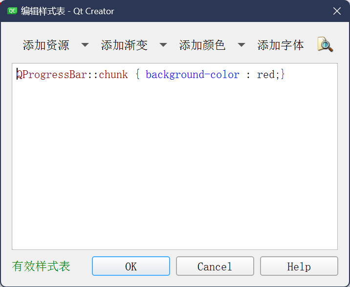 点击右侧的“...”进入QSS编辑页面,并输入如下的代码: