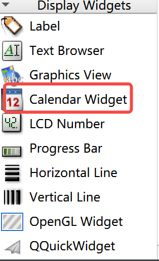 我们先在.ui文件中拖入“Calendar Widget”控件和一个label标签,用于显示选中的日期: