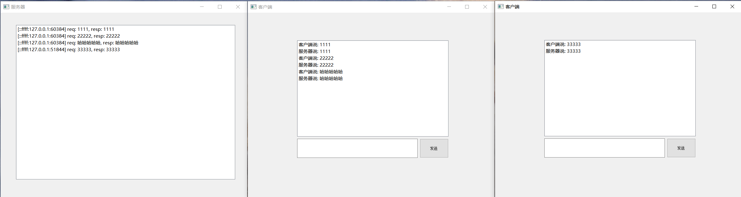 QHostAddress::Any:表示绑定所有网卡的 IP 地址,客户端可通过任意网卡 IP 访问服务器;hasPendingDatagrams():判断是否有待接收的数据报,避免receiveDatagram()阻塞;senderAddress()和senderPort()定位客户端。客户端功能:输入文本并发送给服务器,接收服务器的回显响应并显示。
