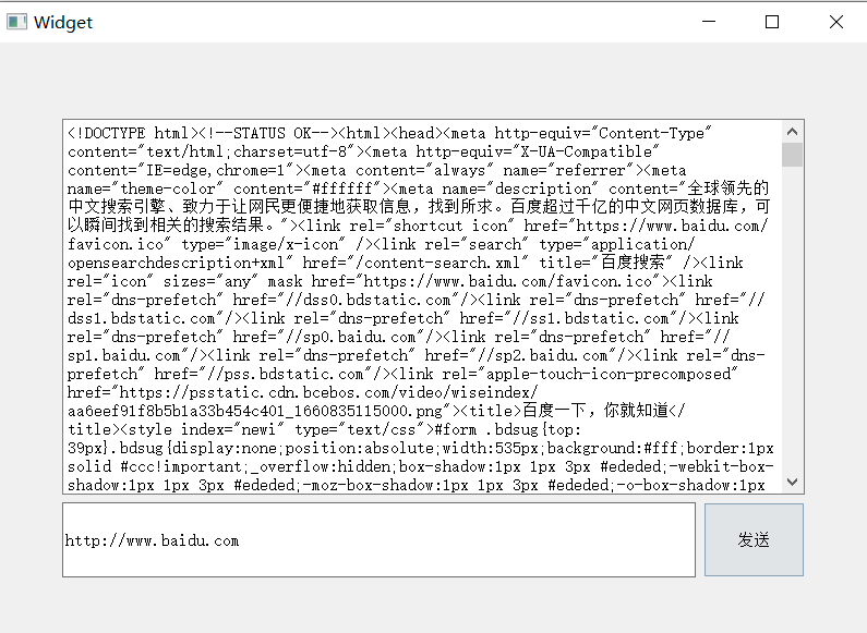 }http://www.baidu.com),点击 “发送请求”;QPlainTextEdit显示百度首页的 HTML 源码;