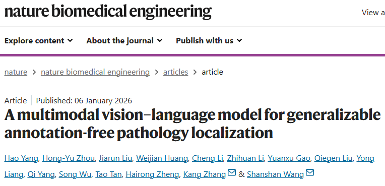 Yang, H., Zhou, HY., Liu, J. et al. A multimodal vision–language model for generalizable annotation-free pathology localization. Nat. Biomed. Eng (2026).