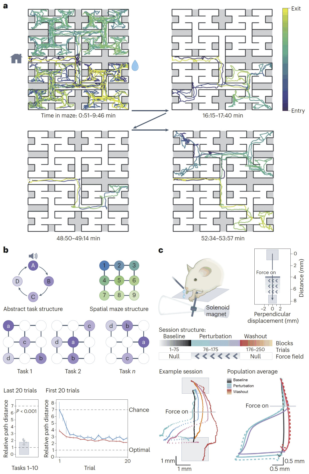 图 1|动物中的快速学习:从少样本学习到基于内部模型更新的学习。