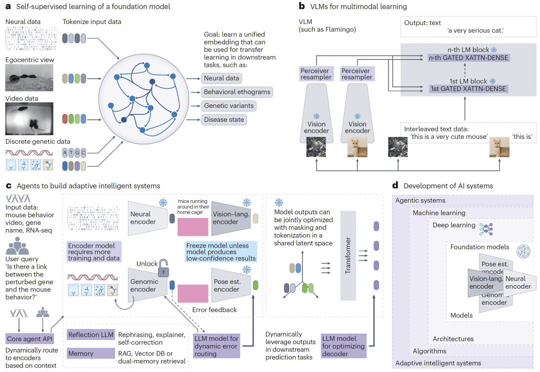 基于此,研究人员提出由多个专用编码器组成的智能体系统。在该系统中,不同编码器处理行为、神经、基因等数据,并在高层通过共享潜在空间进行整合;当系统检测到不确定性或预测误差时,仅对相关模块进行更新,而非整体重训,从而实现真正的在线自适应。