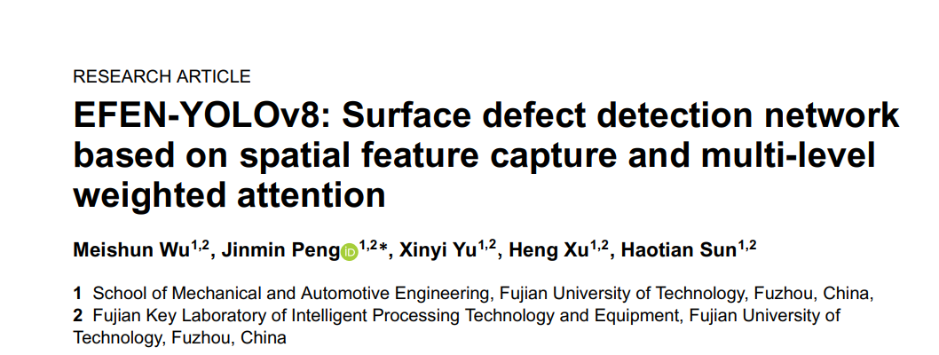 表面缺陷呈现出多方面的挑战,其特点包括不规则的几何形状、可变的尺寸、不一致的长宽比以及不均匀的光照模式。这种多变性削弱了检测算法的有效性,而复杂的背景则对参数密集型网络施加了额外的计算负担。目标检测框架在多尺度泛化方面遇到特殊困难,需要进行大量下采样操作,这会损害小目标检测能力。在背景复杂且缺陷区域微小的场景中,特征提取变得异常困难。单阶段架构为时间关键型应用提供了最佳解决方案,通过统一的检测流程实现了良好的速度-精度权衡,从而提高了实际部署的可行性。然而,在不同工业场景中仍存在显著的优化空间。鉴于模型性能在不同应用领域差异显著,策略性地选择检测器对于最大化检测效率至关重要。本文提出EFEN-YOLOv8,这是一个基于YOLOv8构建的增强框架,专为复杂工业环境下的稳健缺陷检测而设计。主要贡献包括: