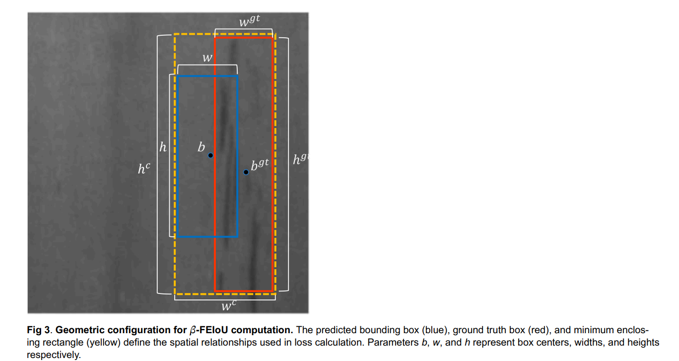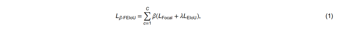 我们提出了𝛽-FEIoU损失函数来增强模型对细粒度类别差异的敏感性。𝛽-FEIoU公式优先考虑相似类别之间的空间和结构变化,使得在训练过程中能够更好地捕获判别性特征。如公式(1)所示,𝛽-FEIoU引入了一个自适应加权因子𝛽,该因子根据预测特征与真实标签特征的重叠度动态调节损失幅度。这种机制强调了表现出高类间相似性的区域,最终增强了模型区分视觉上可比但语义上不同的缺陷的能力。通过增强的空间关系建模,𝛽-FEIoU在具有挑战性的检测场景中提高了分类准确率和鲁棒性。