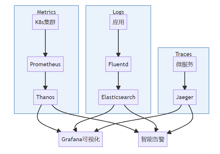 多集群Metrics采集 | 统一采集所有K8s集群的CPU、内存、请求延迟等数据 |