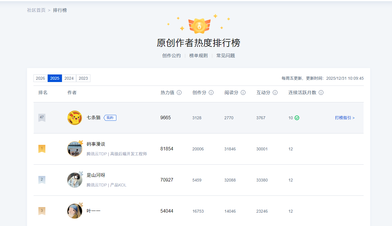 当我在年度“原创作者热度排行榜”上看到自己位列第47名时,这份惊喜之外,更多是沉甸甸的感动。社区不仅是一个展示平台,更是一个充满温度的技术家园。每一篇文章下真诚的评论与探讨,每一次被官方推荐的鼓励,都让我深刻体会到技术分享的价值——它连接着孤岛般的开发者,让知识在流动中增值。