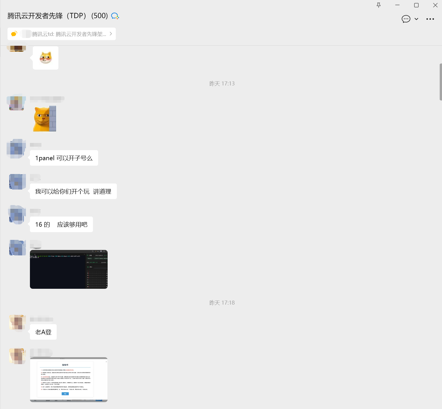 等到下半年8月,腾讯云开发者先锋TDP我也冲了,然后我就加了一个更加庞大的群,500人。