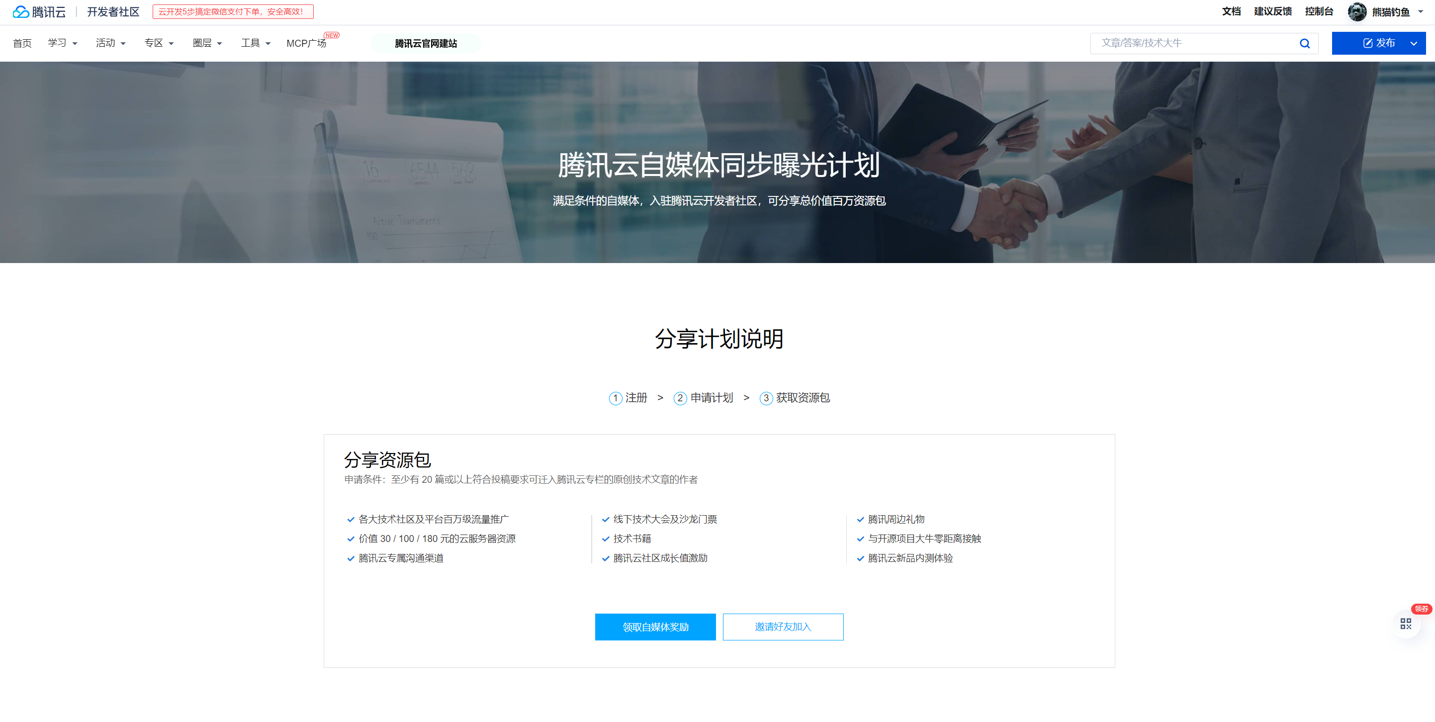 再然后,我发现有个腾讯云自媒体分享曝光计划的活动,我也是欣然加入了。