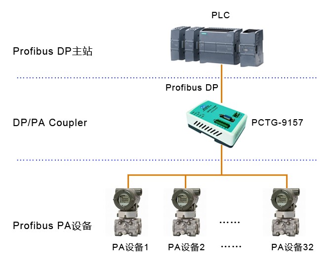 案例说明:工业现场有多台横河PA协议的压力变送器通过要接入到S7-1200系统中,此项目采用磐创科技的DP/PA耦合器(型号:PCTG-9157)实现通讯并对压力变送器的各种数据进行监控。