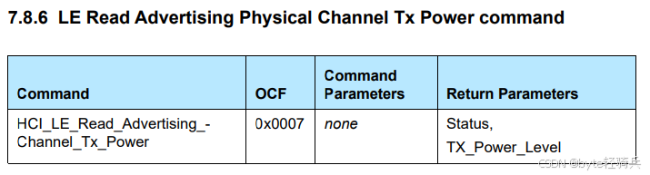 HCI_LE_READ_ADVERTISING_CHANNEL_TX_POWER_OP_CODE需要替换为实际的操作码。在对应版本的蓝牙核心规范中查找正确的操作码。