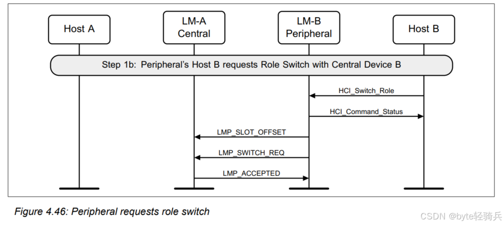 外围设备的主机发送槽偏移量和角色切换请求,中心设备将使用 LMP_ACCEPTED 协议数据单元(PDU)进行响应。
