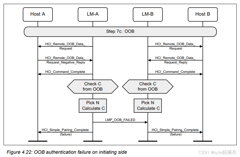 如果发起方(即主动发起配对请求的设备)没有可用的带外(Out of Band,OOB)信息,那么带外认证步骤将无法进行,从而导致带外认证失败。带外信息通常是通过非蓝牙通信渠道(如NFC、二维码等)在设备之间交换的。