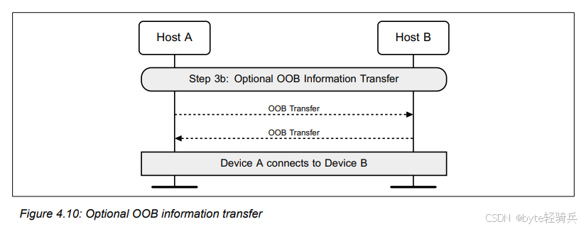 OOB(Out of Band)信息传输是一种在蓝牙设备间传输额外信息的方法,这些信息通常用于增强设备间的认证过程。即使两个蓝牙设备之间尚未建立连接,OOB信息传输也可以发生。它主要用于传输设备的蓝牙设备地址和用于身份验证的其他OOB信息。