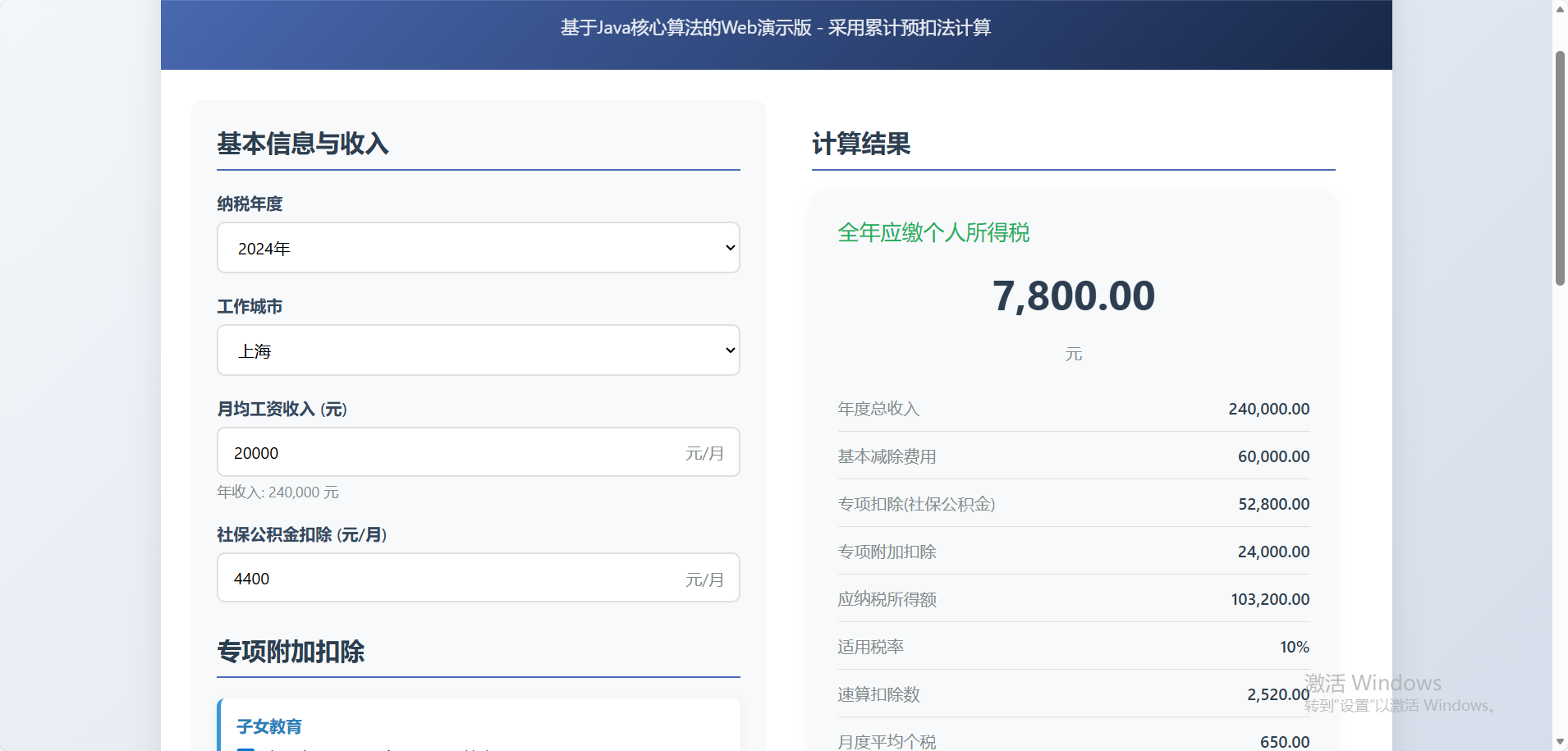 // 计算专项附加扣除总额