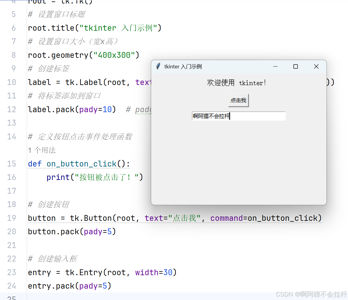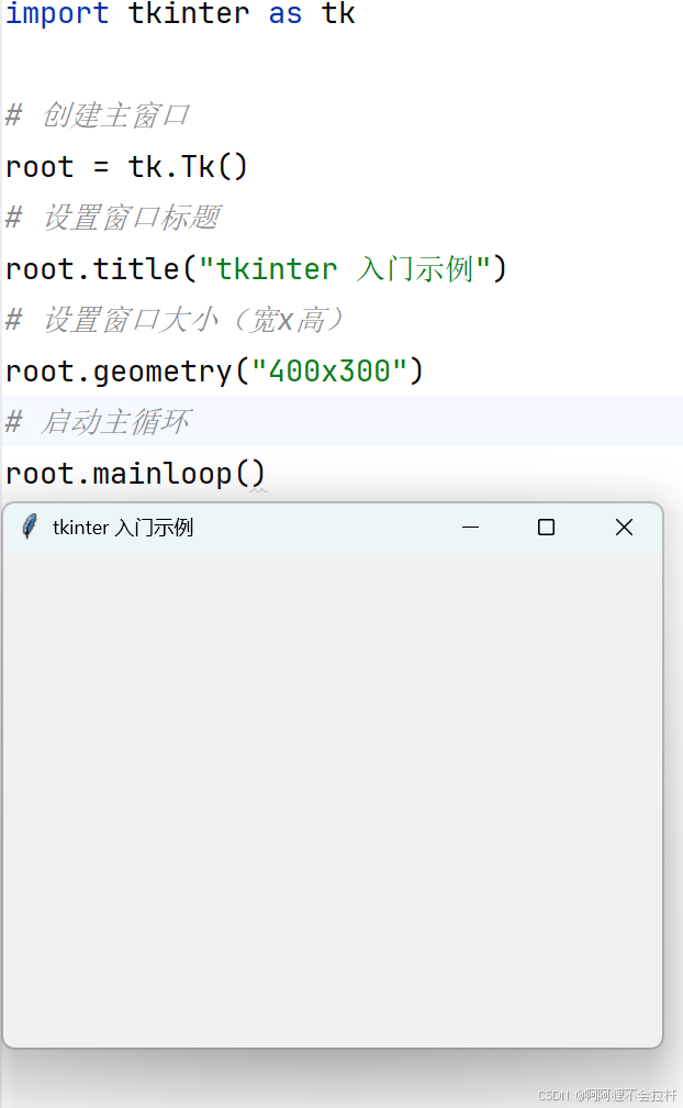 mainloop(): 进入事件监听循环,等待用户交互,如点击、输入等。