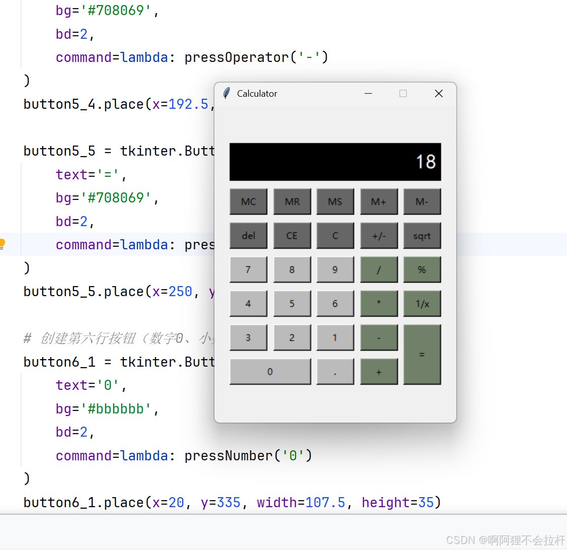 掌握 tkinter,就是为你的 Python 开发之旅装备了一把多功能瑞士军刀,无论是快速原型构建还是小型桌面应用开发,都能得心应手。文章附上tkinter计算器.py供读者参考学习。展示效果如下。