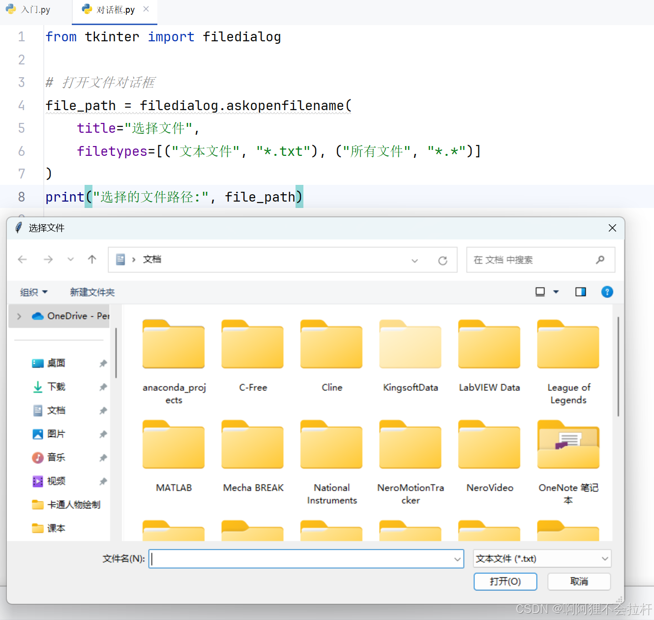 file_menu.add_command(label="打开", command=lambda: print(f"打开文件: {filedialog.askopenfilename()}"))