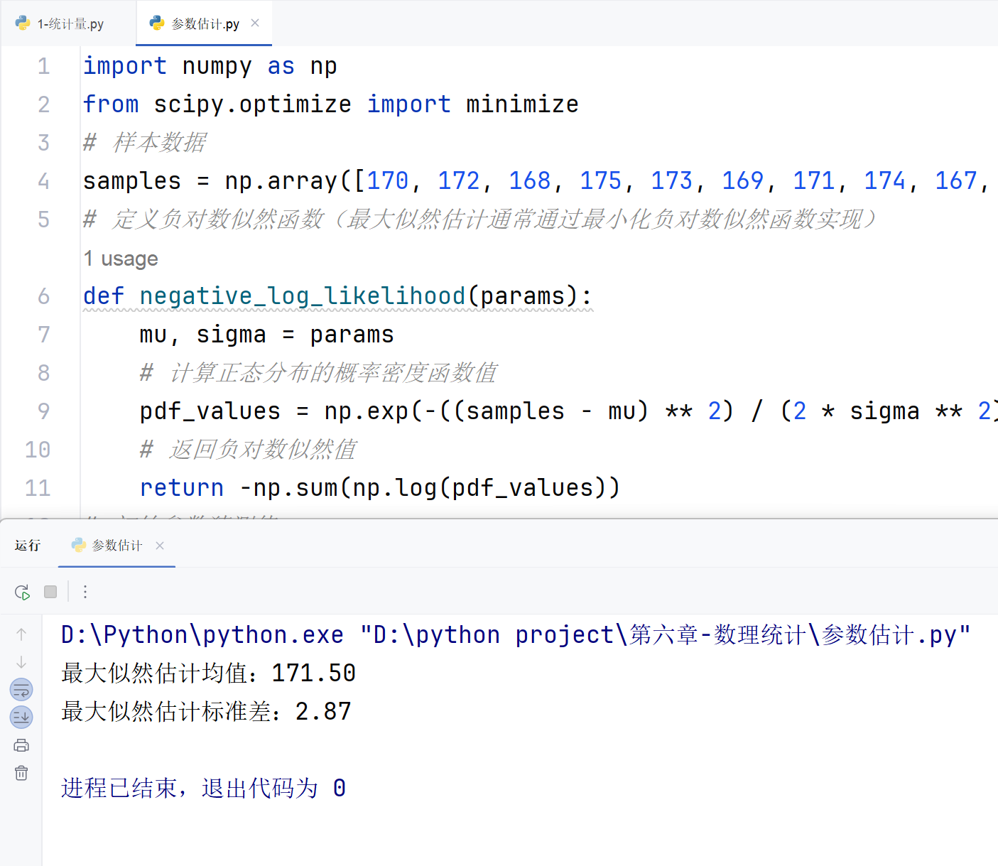 # 定义负对数似然函数(最大似然估计通常通过最小化负对数似然函数实现)