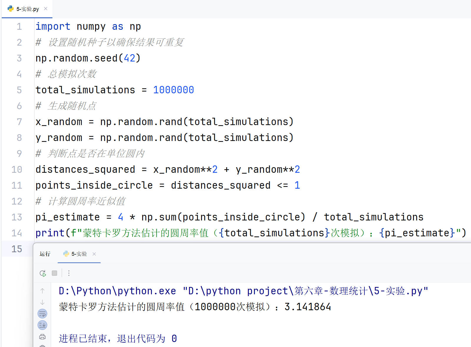 通过蒙特卡罗方法近似计算圆周率 π 的值,理解随机抽样在数值计算中的应用。