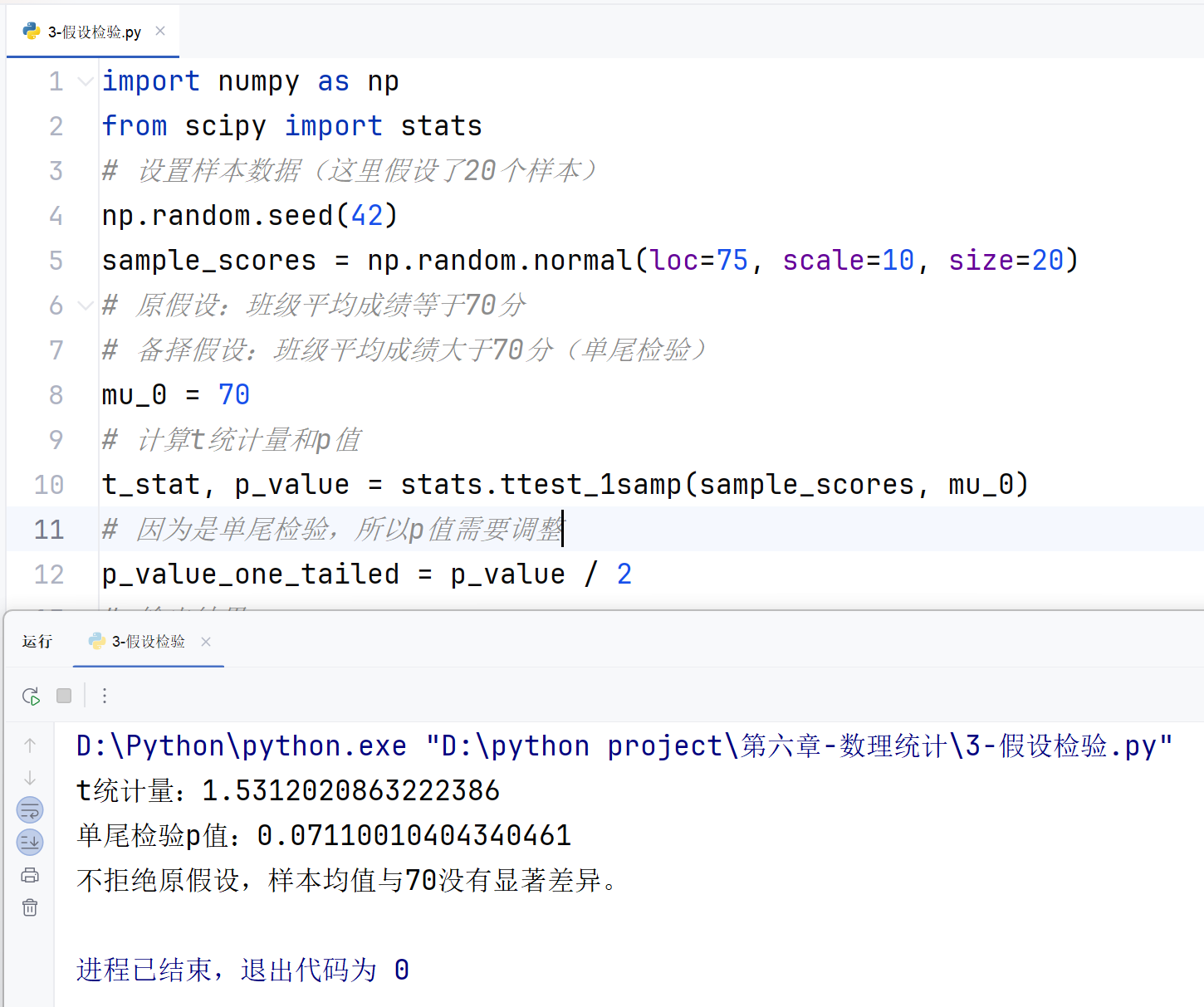 print(f"单尾检验p值:{p_value_one_tailed}")