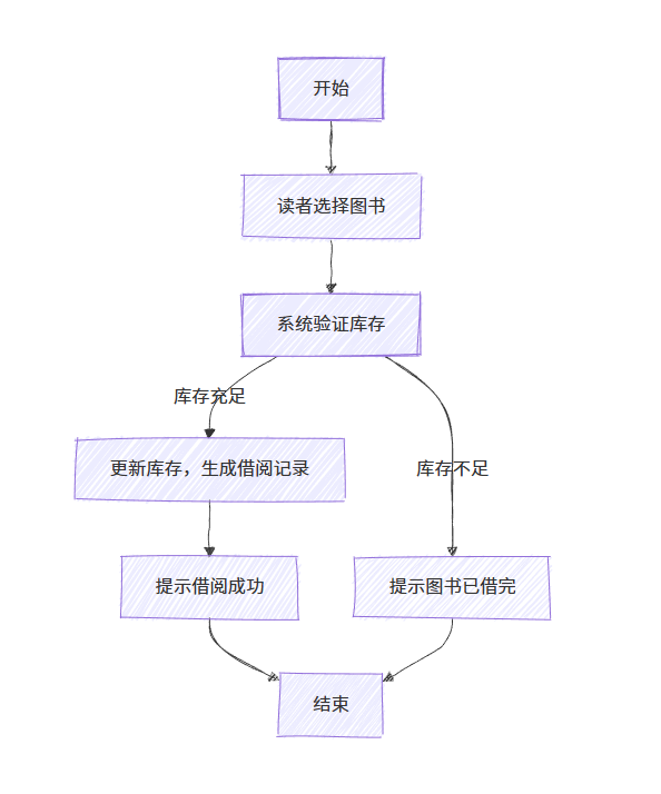 扩展事件流:若图书库存不足,系统提示 “图书已借完”。
