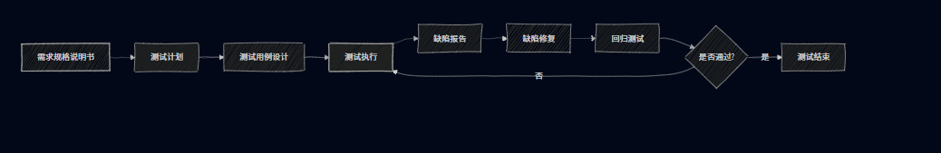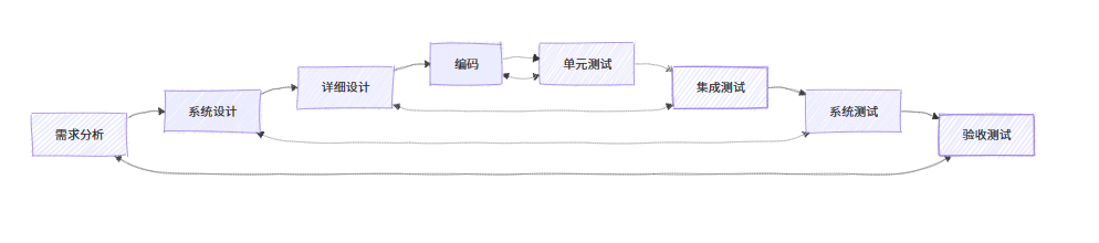 软件测试的过程模型通常与软件开发过程模型对应,常见的有 V 模型、W 模型等。以 V 模型为例: