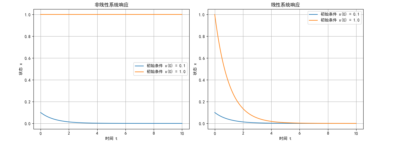 线性系统可以用线性微分方程描述,而非线性系统需要用非线性微分方程描述。线性系统的响应特性主要由系统参数决定,而非线性系统的响应还与输入信号的大小和形式有关。