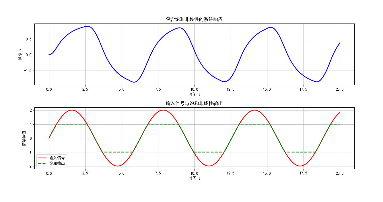 下面是一个包含饱和非线性特性的系统仿真代码: